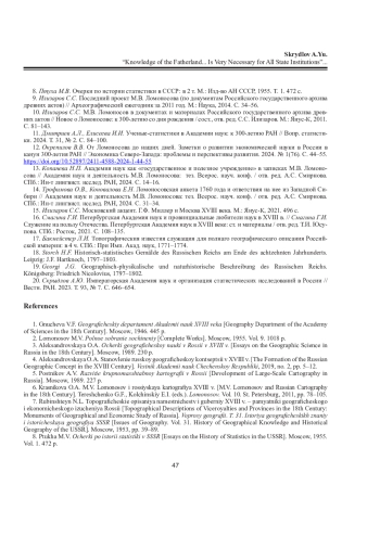 1. Гнучева В.Ф. Географический департамент Академии наук XVIII века М.; Л.: Изд-во Акад. наук СССР, 1946. 445 с. EDN: TDEJLD