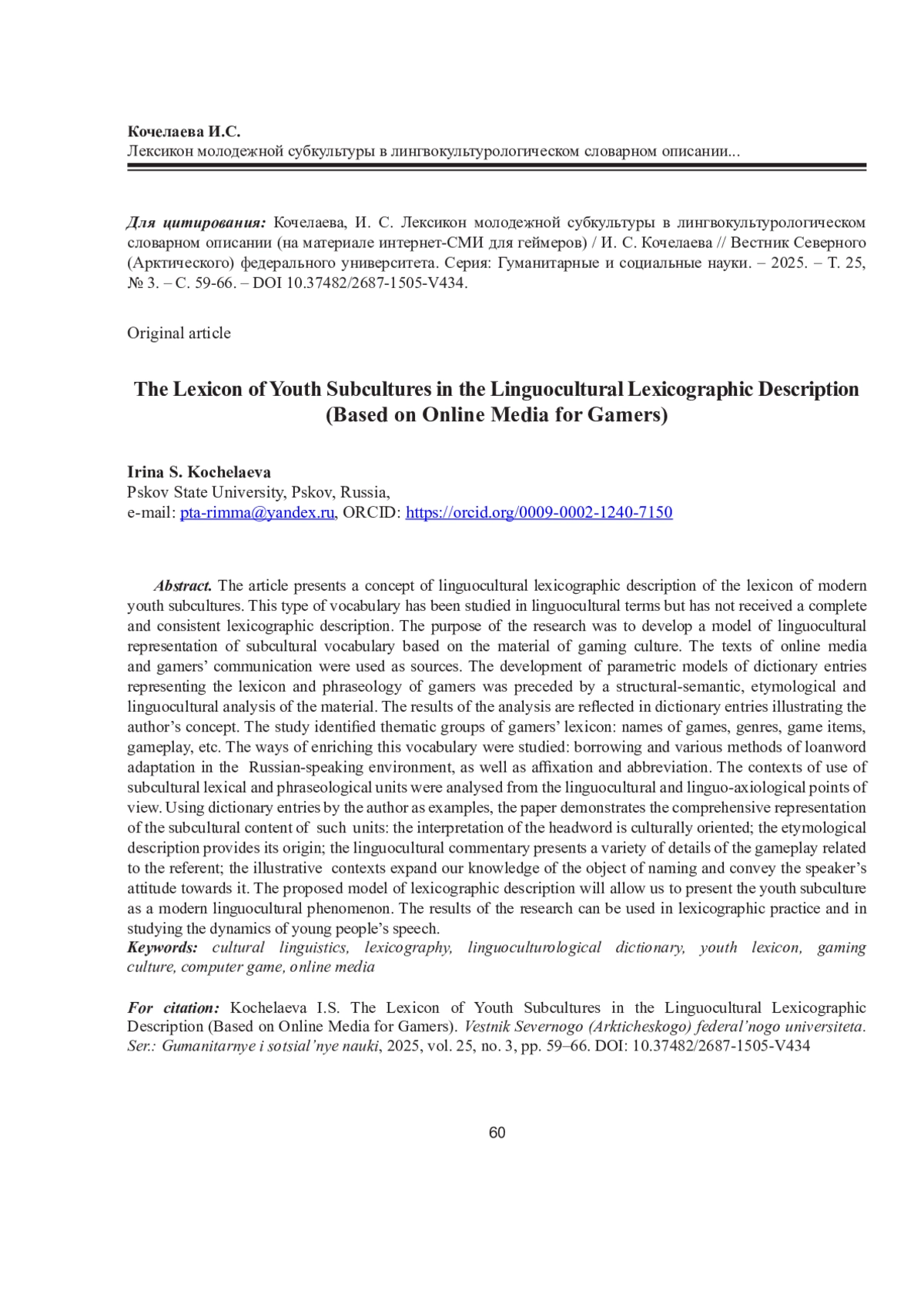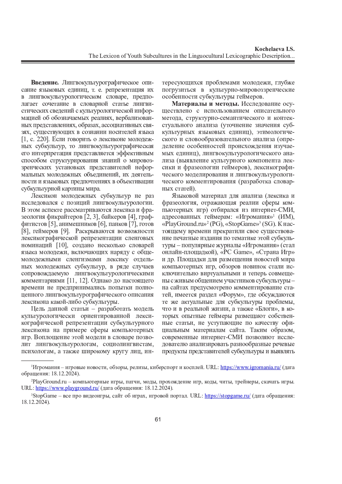 13. Кочелаева И.С. Лексикон субкультуры геймеров: тематические доминанты // Вестн. филол. наук. 2021. Т. 1, № 2. С. 19-24.