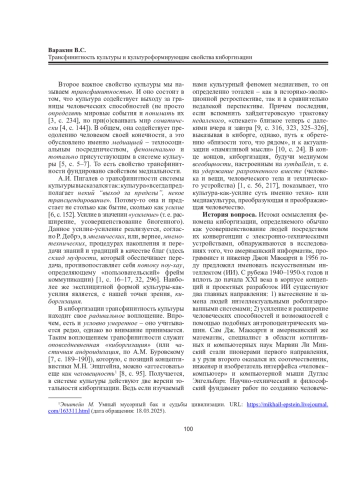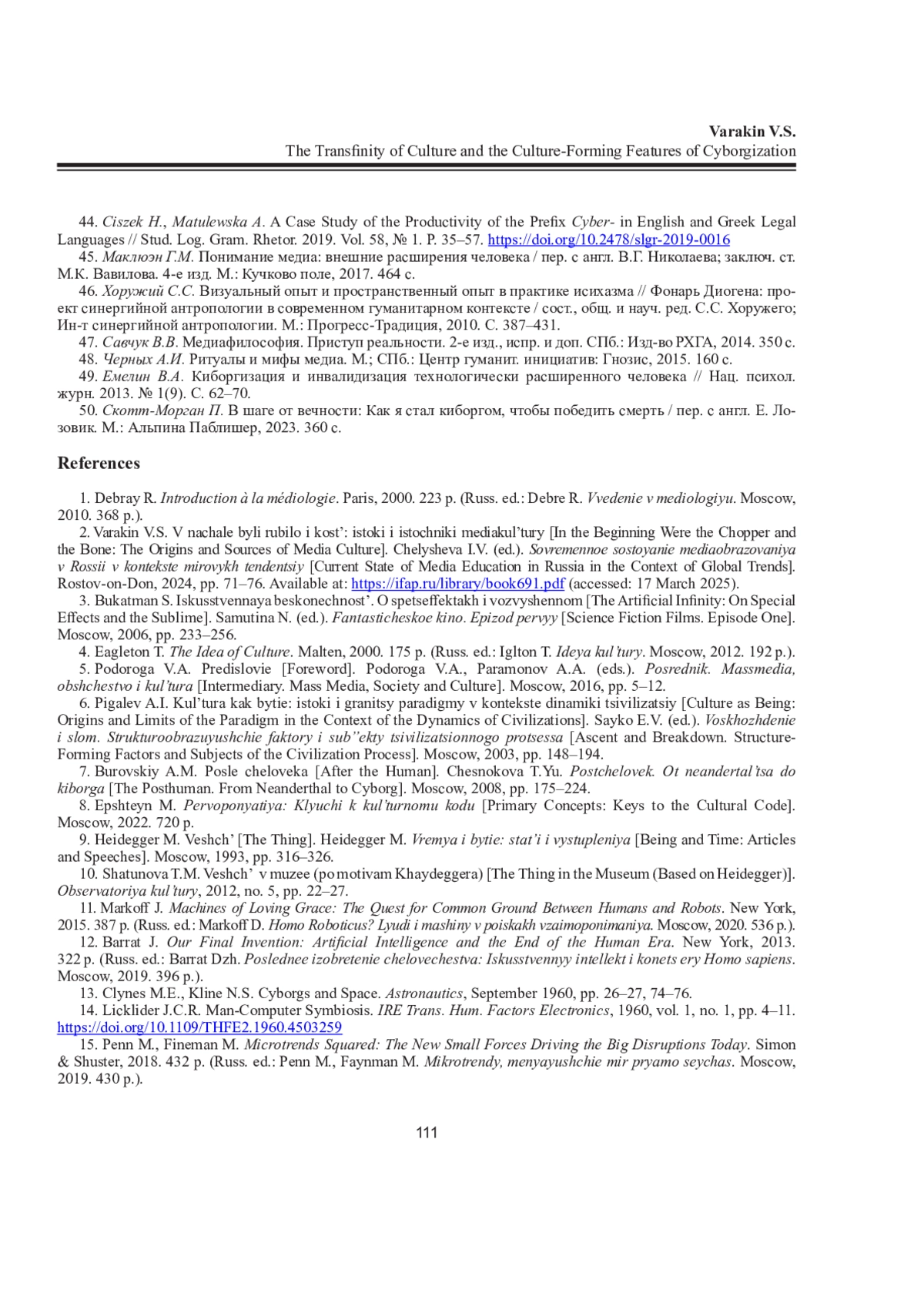 45. Varakin V.S. The Transfinity of Culture and the Culture-Forming Features of Cyborgization.