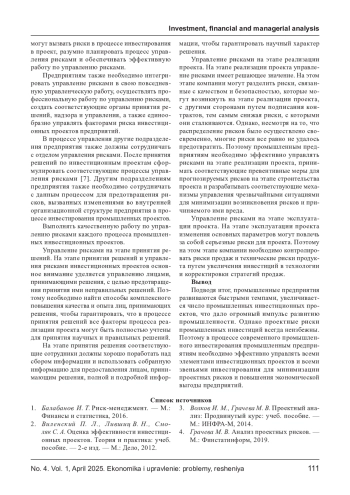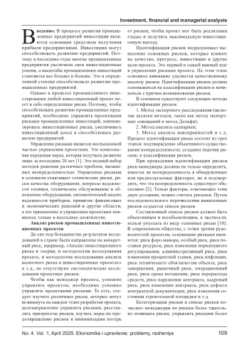 9. Краснов А. М. Управление рисками инвестиционных проектов промышленных предприятий: дис… к. э. н. - М.: ГАСИС, 2016.