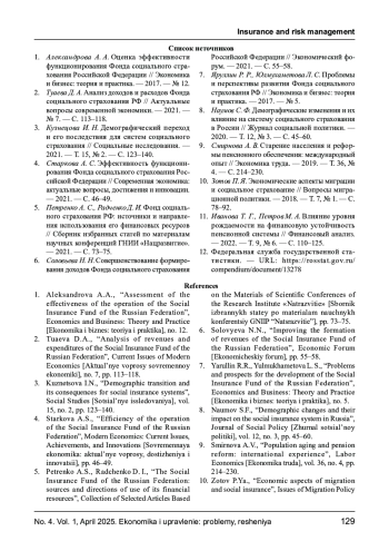 11. Иванова Т. Г., Петров М. А. Влияние уровня рождаемости на финансовую устойчивость пенсионной системы // Финансовый анализ. - 2022. - Т. 9, № 6. - С. 110-125.
