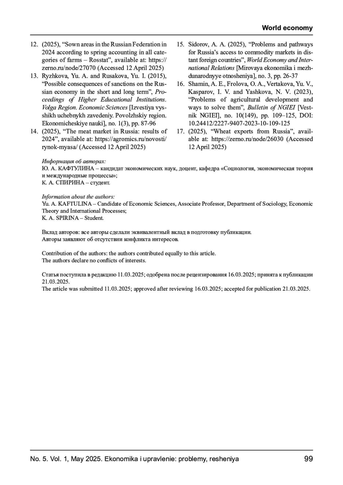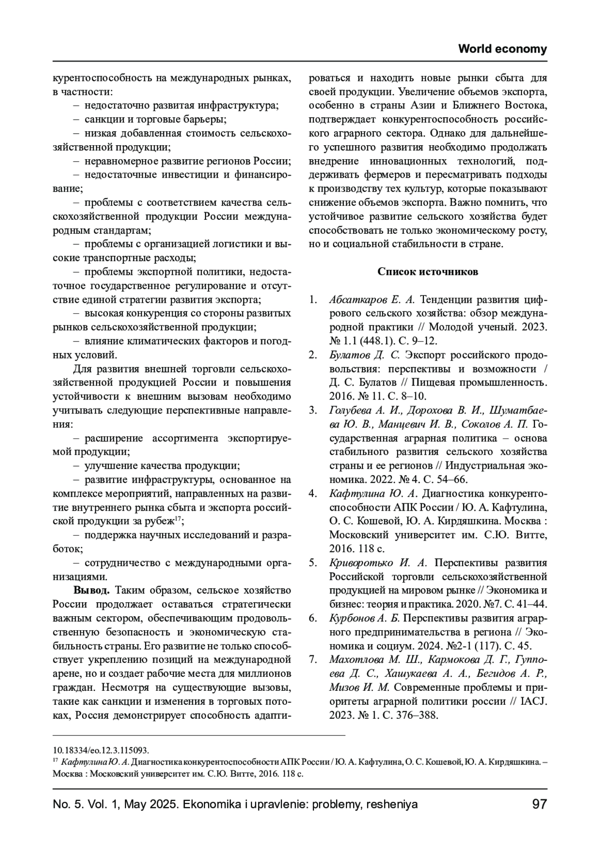 16. Сидоров А.А. Проблемы и пути доступа россии на товарные рынки стран дальнего зарубежья. Мировая экономика и международные отношения, 2025. № 3, С. 26-37. EDN: GZZROR