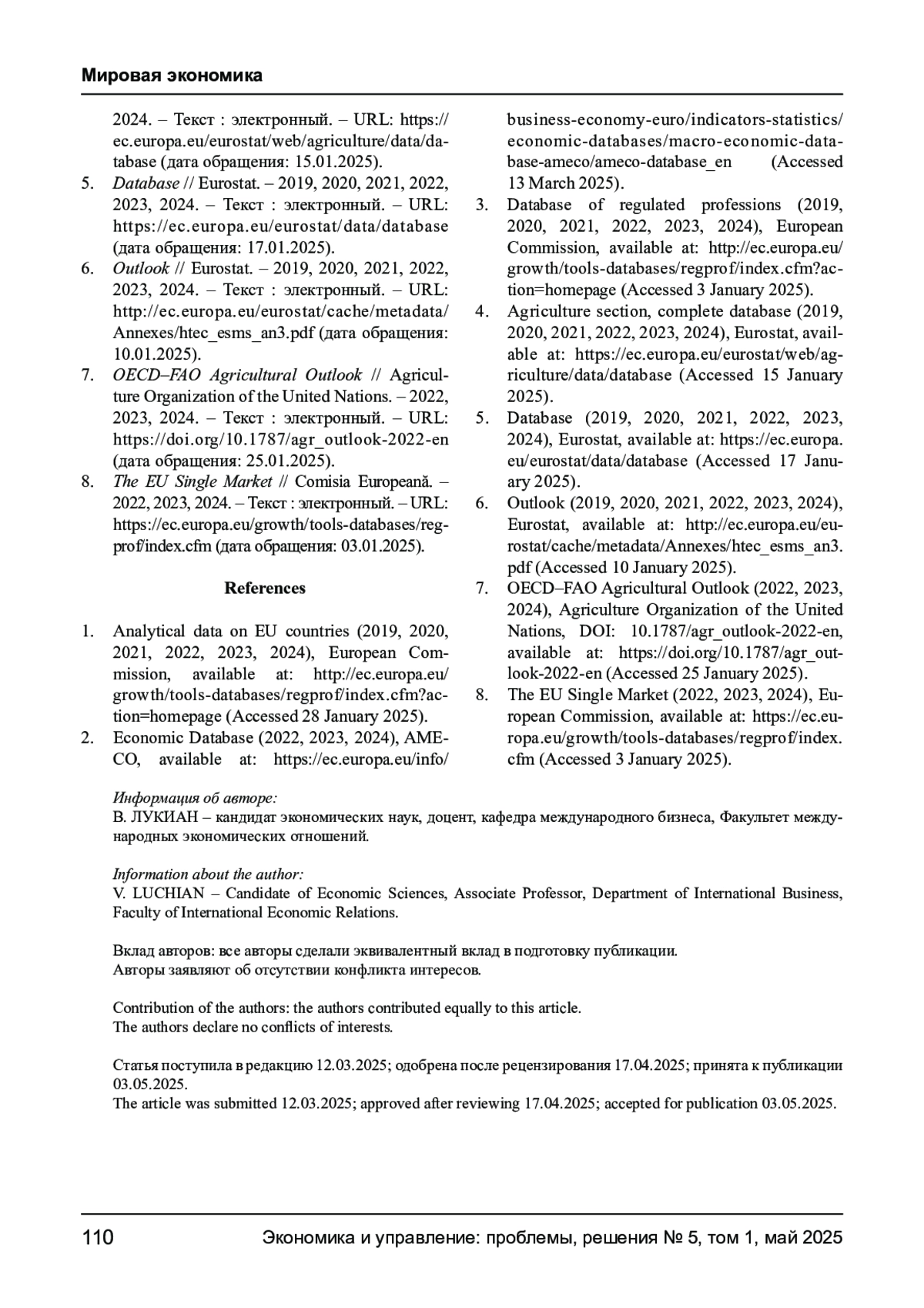 5. Database // Eurostat. - 2019, 2020, 2021, 2022, 2023, 2024. - Текст: электронный. - URL: https://ec.europa.eu/eurostat/data/database (дата обращения: 17.01.2025).