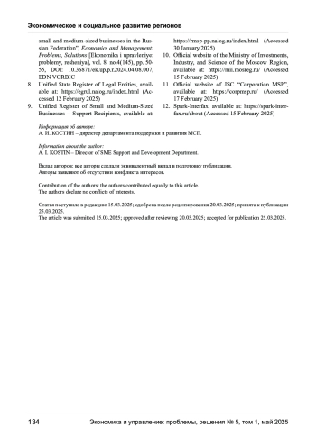 7. Топчи Ю. А. О некоторых методологических вопросах управления развитием малого и среднего предпринимательства в Российской Федерации // Экономика и управление: проблемы, решения. - 2024. - Т. 8, № 4(145). - С. 50-55. DOI: 10.36871/ek.up.p.r.2024.04.08.007 EDN: VORBIC