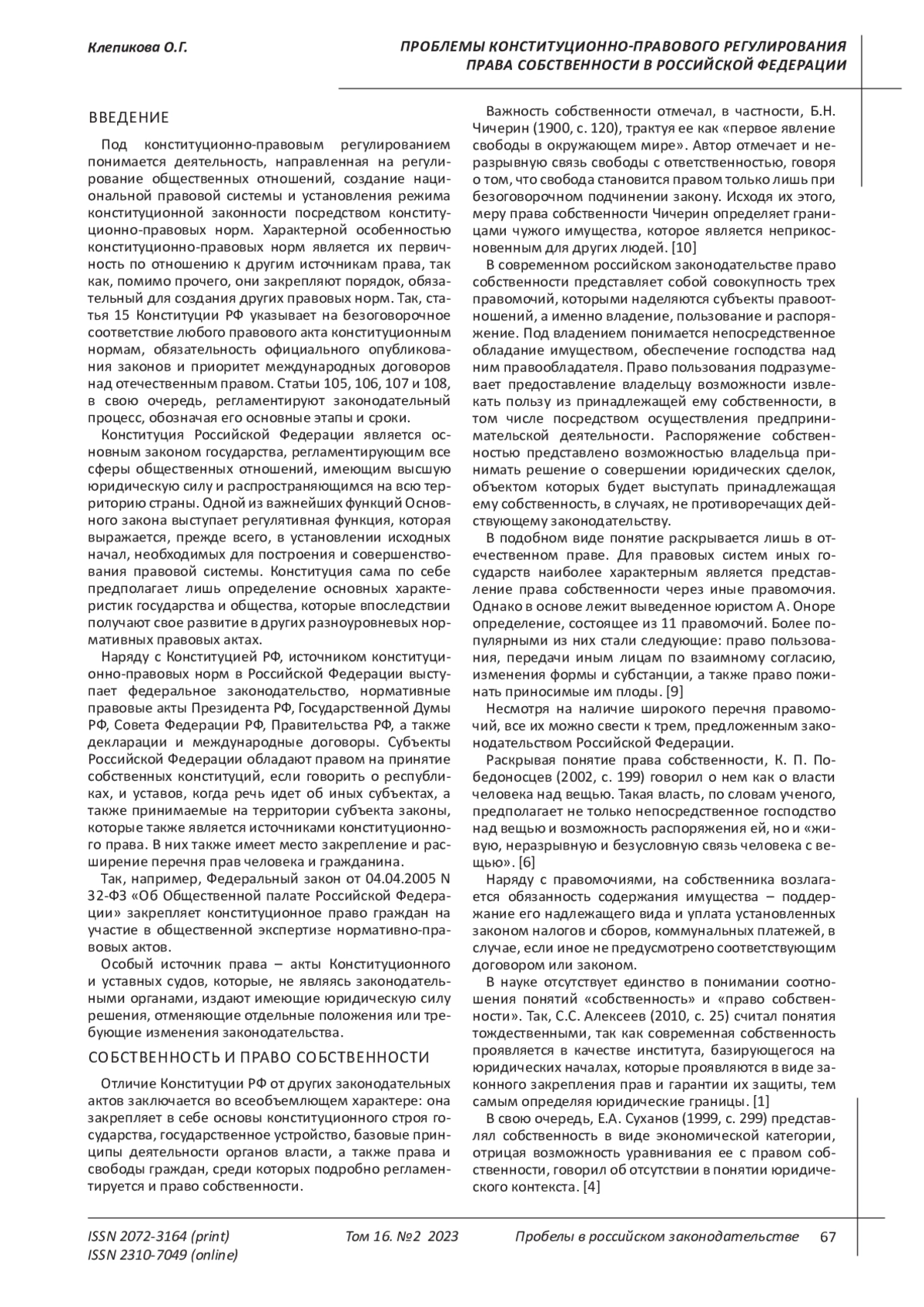 7. Саурин А.А. Право собственности в Российской Федерации: конституционно-правовые пределы реализации и ограничения: Дисс… докт. юрид. Наук. М. 2014. - 400 с. EDN: SPKVVD