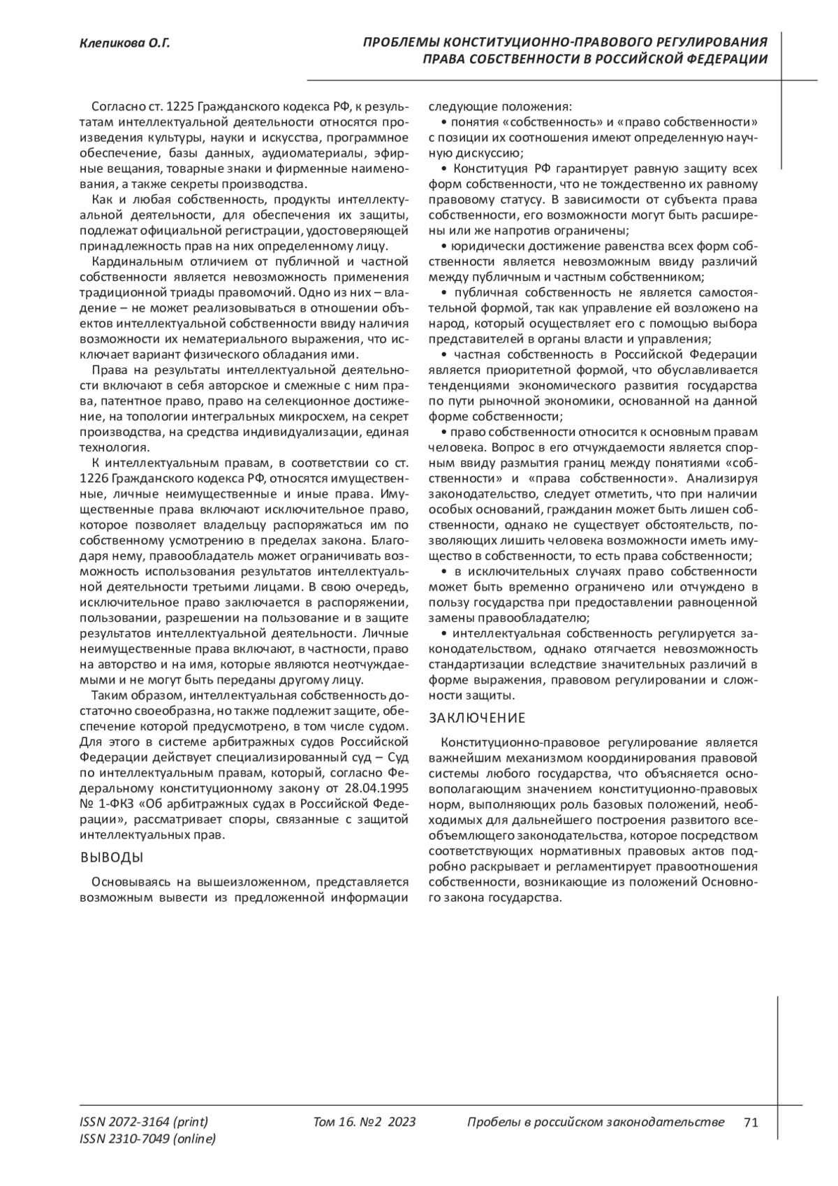 Useikin A.K. Property and property rights // Man: crime and punishment. 2013. №2. URL: https://cyberleninka.ru/article/n/sobstvennost-i-pravo-sobstvennosti.