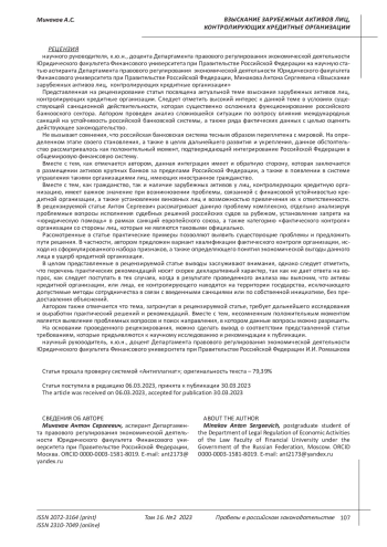 Ulezko A. New approaches to subsidiary liability of persons exercising actual control // “Legal work in a credit institution”. 2018. № 1.