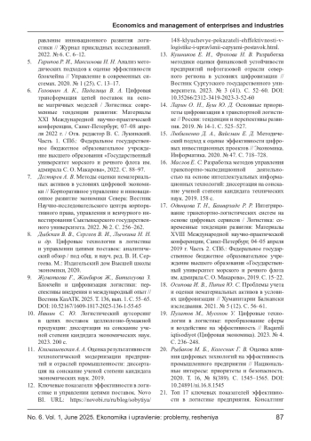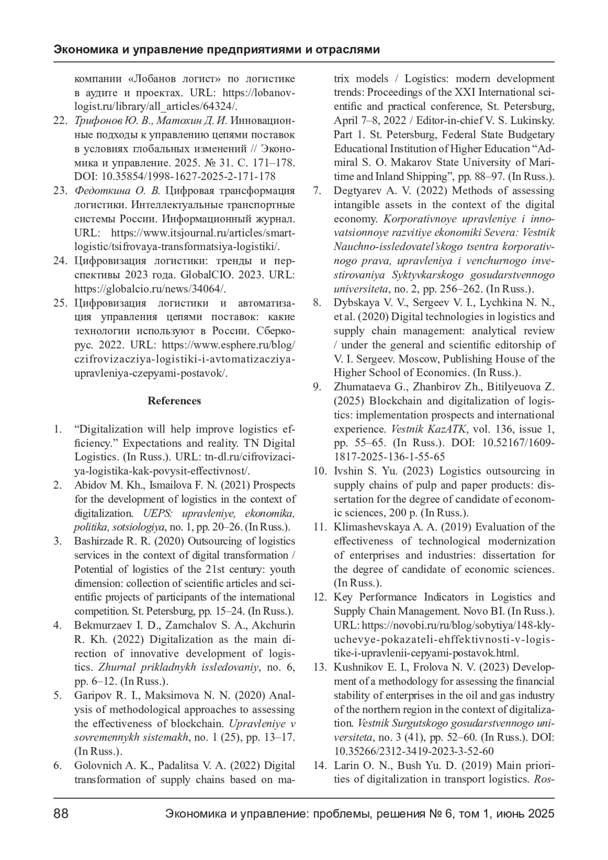 2. Абидов М. Х., Исмаилова Ф. Н. Перспективы развития логистики в условиях цифровизации // УЭПС: управление, экономика, политика, социология. 2021. № 1. С. 20-26. EDN: HPHENC
