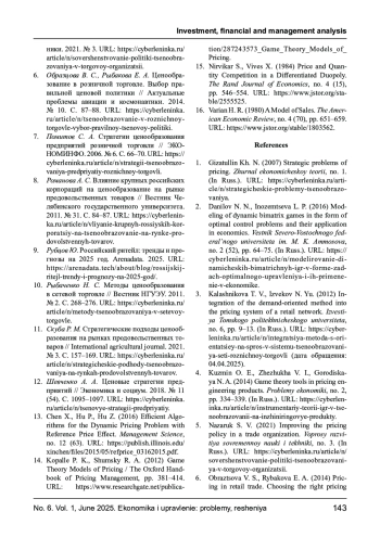 14. Kopalle P. K., Shumsky R. A. (2012) Game Theory Models of Pricing / The Oxford Handbook of Pricing Management, pp. 381-414. URL: https://www.researchgate.net/publication/287243573_Game_Theory_Models_of_Pricing.