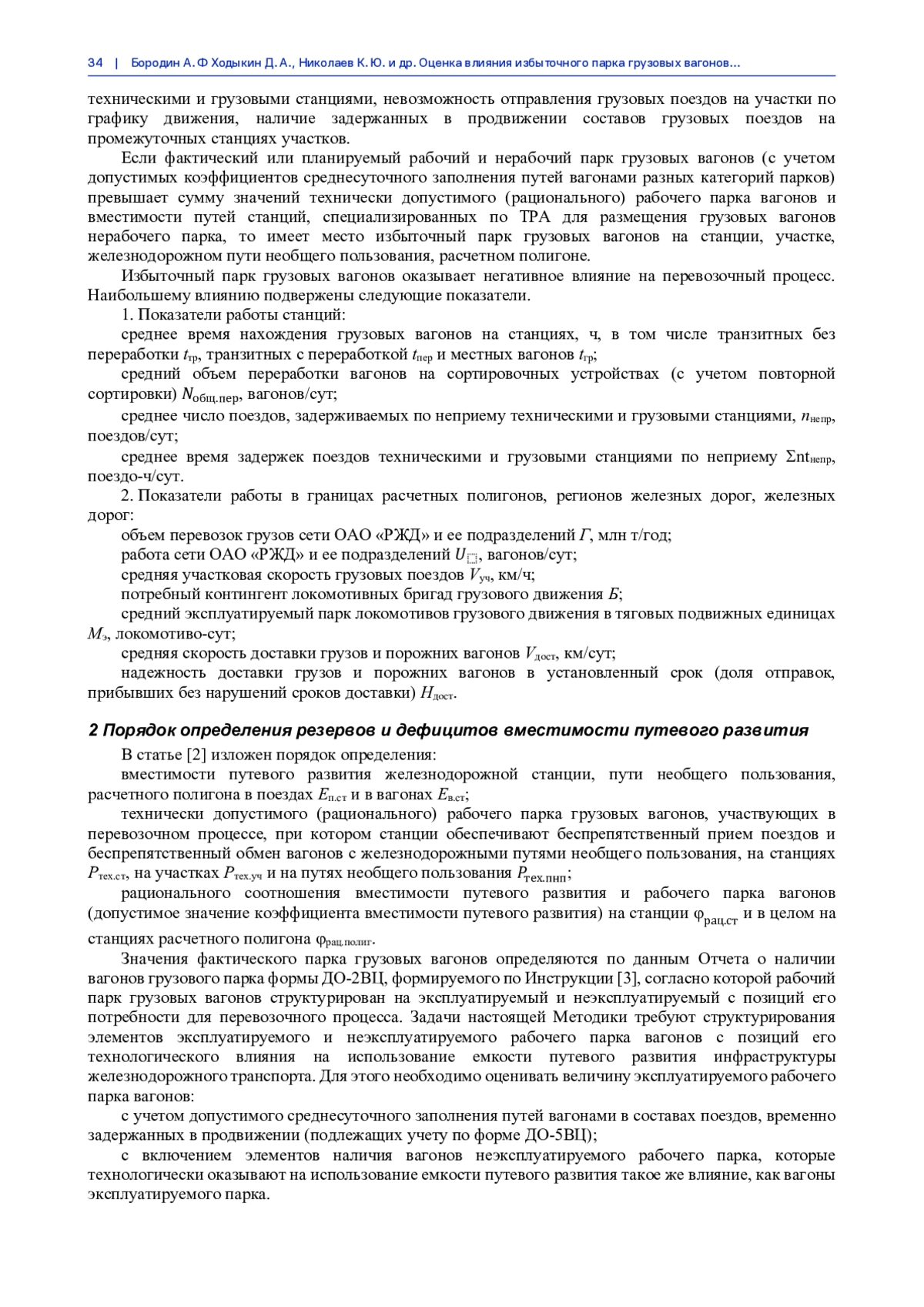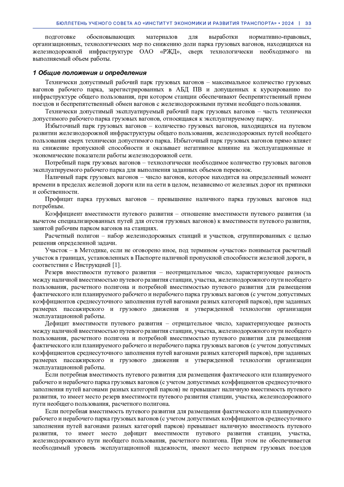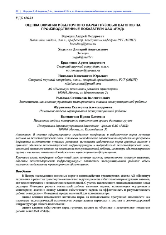 В статье сформулированы определения профицита и избыточного парка грузовых вагонов на железнодорожной сети, изложены методические положения по определению резервов и дефицитов вместимости путевого развития, вычисления избыточного парка грузовых вагонов в границах объектов железнодорожной инфраструктуры и подразделений железнодорожной сети, численной оценки его влияния на показатели эксплуатационной работы, на потери объемов перевозок грузов и снижение показателей надежности транспортного обслуживания.