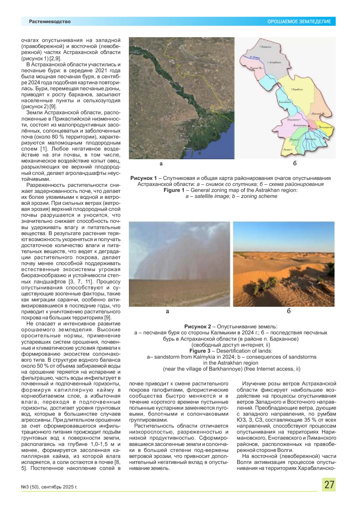 2. Вайчулис Г.В., Быстрова И.В., Смирнова Т.С. Опустынивание земель южных регионов России. Возможные пути решения проблемы // Научные высказывания. 2021. № 2(2). С. 29-31. URL: https://nvjournal.ru/article/39-opustinivanie-zemel-yuzhnikh-regionov-rossii-vo. (дата обращения 30.04. 2025 г.).