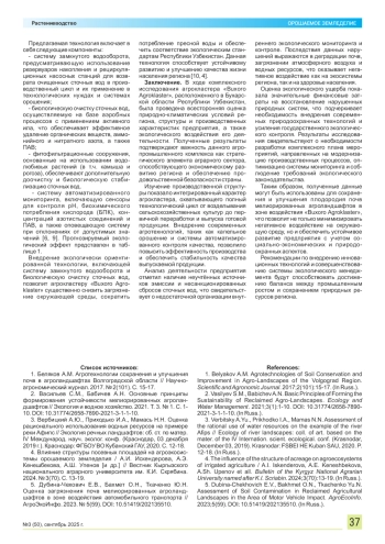 1. Беляков А.М. Агротехнологии сохранения и улучшения почв в агроландшафтах Волгоградской области // Научноагрономический журнал. 2017. № 2(101). С. 15-17.