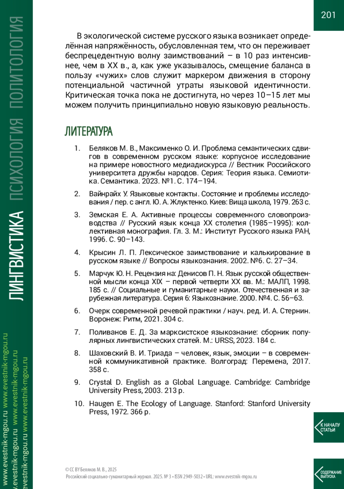10. Haugen E. The Ecology of Language. Stanford: Stanford University Press, 1972. 366 p.