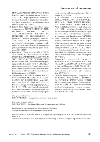 18. Чуйкова Татьяна Сергеевна, Шангареева Лина Раулевна ПРОФЕССИОНАЛЬНОЕ ВЫГОРАНИЕ В МЕНЯЮЩИХСЯ УСЛОВИЯХ ТРУДОВОЙ ЗАНЯТОСТИ // Педагогический журнал Башкортостана. 2022. №2 (96). URL: https://cyberleninka.ru/article/n/professionalnoe-vygoranie-v-menyayuschihsya-usloviyah-trudovoy-zanyatosti (дата обращения: 17.05.2025).