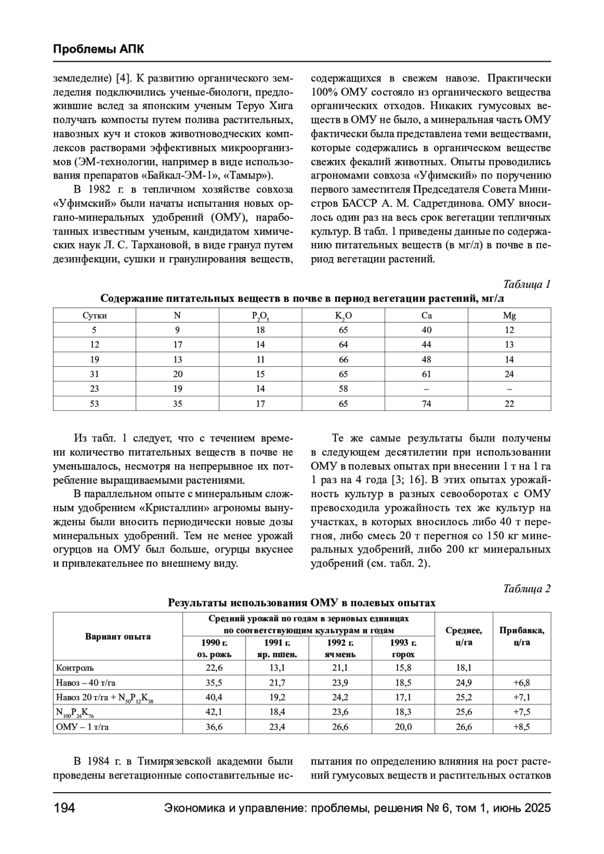 16. Тарханов О. В., Тарханова Л. С., Валеев В. М. и др. Органо-минеральные удобрения на основе свежезаконсервированной органики / Сборник трудов “Почвы, жизнь, благосостояние”. Пенза, 2000. 424 с.