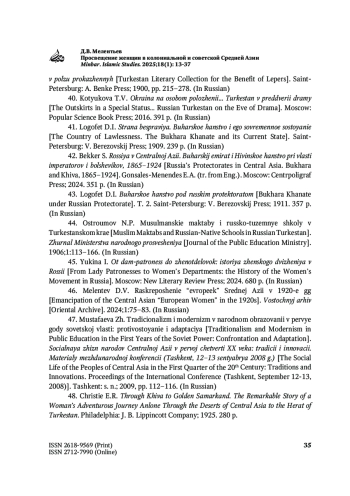 46. Мелентьев Д.В. Раскрепощение «европеек» Средней Азии в 1920-е гг. Восточный архив. 2024;1:75-83.