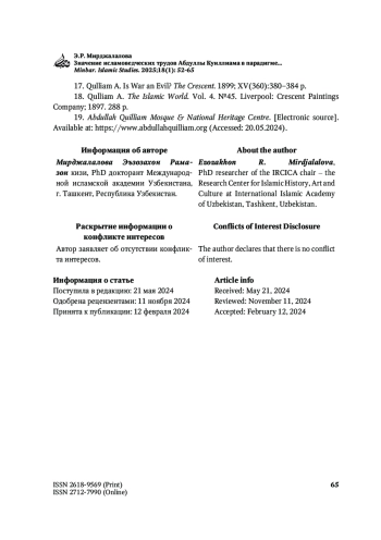 15. Nash G. W.H. Quilliam, Marmaduke Pickthall and the window of British modernist Islam. Postcolonialism and Islam. 1st edition. London: Routledge; 2013. 12 p.