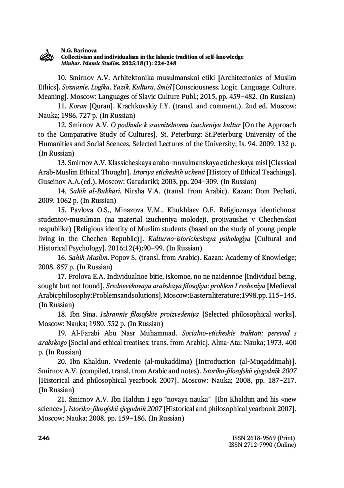 10. Смирнов А.В. Архитектоника мусульманской этики. Сознание. Логика. Язык. Культура. Смысл. М.: Языки славянской культуры; 2015. С. 459-482.