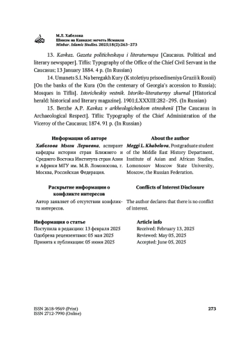 12. Asatrian G., Margarian H. The Muslim Community of Tifl is (8th-19th Centuries). Iran and the Caucasus. 2004;8(1):29-52. https://doi.org/10.1163/1573384042002966