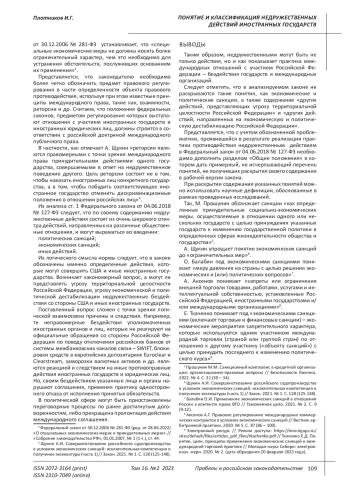 В соответствии с Федеральным законом от 04.06.2018 № 127-ФЗ определяется понятие недружественных действий США и иных иностранных государств1. Закрепленное в законе абстрактное словосочетание «иные иностранные государства» по своему смыслу является синонимом общепринятого в настоящее время словосочетания, несущим негативный смысл и звучащим в речах официальных лиц Российской Федерации, как «коллективный запад». Изначальная формулировка закона «и иных иностранных государств» через четыре года была конкретизирована в рамках реализации Указа Президента Российской Федерации от 3 мая 2022 г. № 252, в котором абстрактные «иные государства» были названы как персональные субъекты международных публичных отношений.