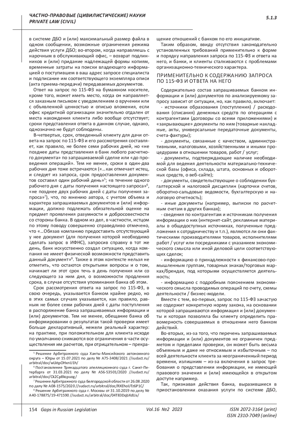Лимитирование или приостановка операций по счету, отказ в расчетно-кассовом обслуживании (далее – РКО) и расторжение соответствующего договора, удержание заградительного тарифа, ограничение в последующем возможности заключения иных договоров о РКО – общеизвестные последствия неудовлетворительного с точки зрения банка ответа на его запрос, обусловленный противоправным в понимании Федерального закона от 07.08.2001 № 115-ФЗ «О противодействии легализации (отмыванию) доходов, полученных преступным путем, и финансированию терроризма» (далее – Закон № 115-ФЗ) характером осуществляемых клиентом операций (далее – запрос по 115-ФЗ, в части, не касающейся идентификации клиентов и раскрытия информации об их бенефициарных владельцах, обязательного контроля отдельных операций)
