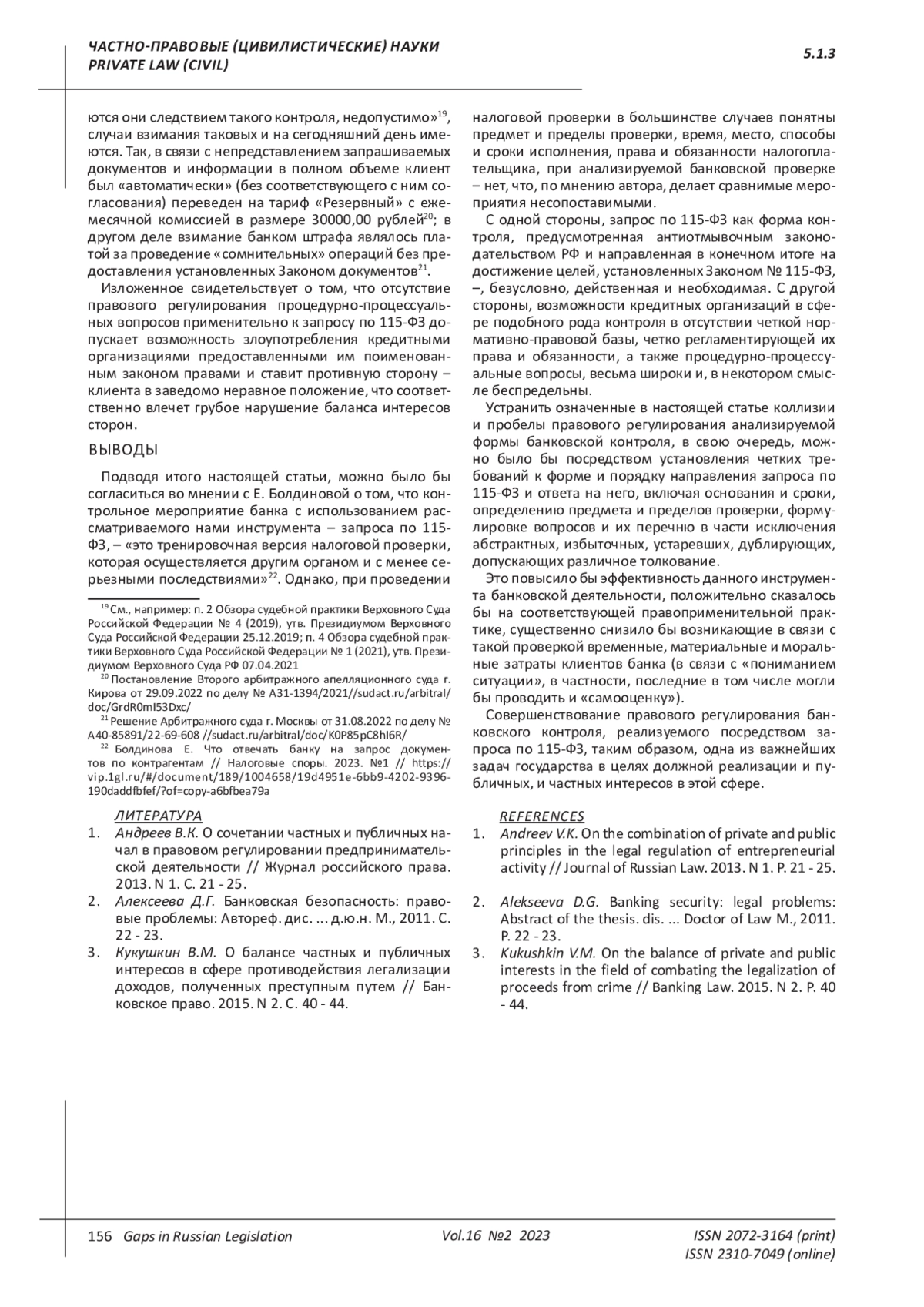 3. Кукушкин В.М. О балансе частных и публичных интересов в сфере противодействия легализации доходов, полученных преступным путем // Банковское право. 2015. N 2. С. 40 - 44. EDN: TNDMUH
