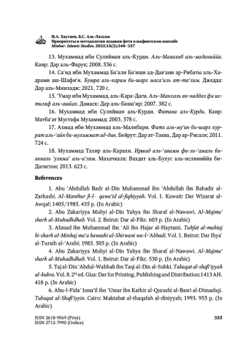 1. Абу-‘Абд-Аллах Бадр ад-дин Мухаммад ибн ‘Абд-Аллах ибн Бахадир аш-Шафи‘и аз-Заркаши. Аль-Мансур фи-ль-кава‘ид аль-фикхиййа. Т. 1. Кувейт: Дар Визарат аль-Ауқаф; 1405/1985. 435 с.
