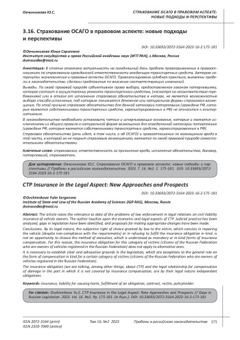 3. Бакланова Л.Д. Обязательное страхование автогражданской ответственности в условиях его развития в России. Автореферат диссертации на соискание ученой степени кандидата экономических наук. Москва, 2006. EDN: NNVWWD