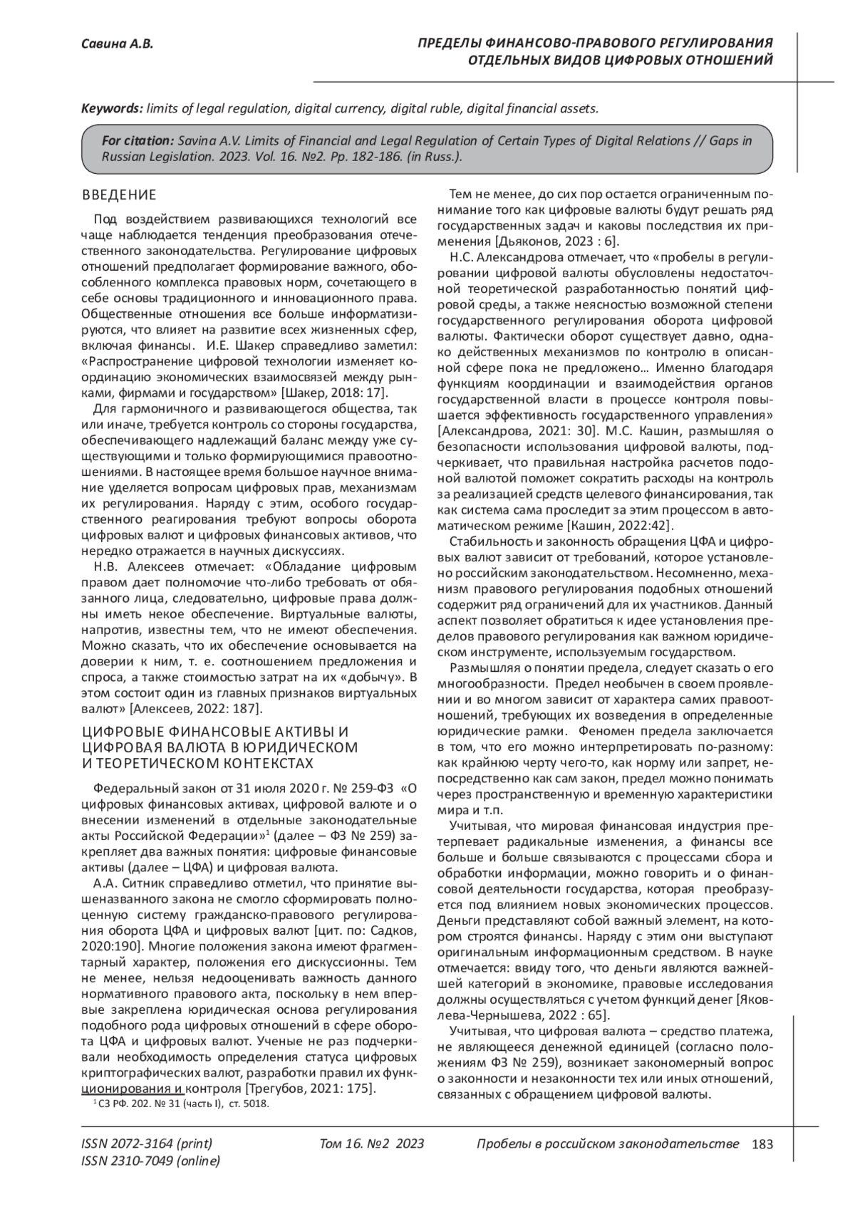 2. Алексеев Н.В. Соотношение институтов цифровых прав, цифровых финансовых активов и цифровых валют // Вестник Воронежского государственного университета. Серия: Право. 2022. № 1 (48). С. 180-190. EDN: YBDIQN