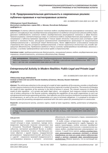 5. Проблемы развития и перспективы предпринимательского права в современных экономических условиях: монография / отв. ред. С.С. Занковский. М: Проспект, 2020. - 656 С. EDN: PFBNVF