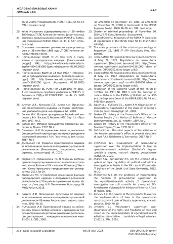 30. Дытченко Г.В. Развитие прокурорского надзора за исполнением законов в оперативно-розыскной деятельности. (Бакалавриат, специалитет, магистратура, аспирантура). М.: 2020. EDN: CVYHDB