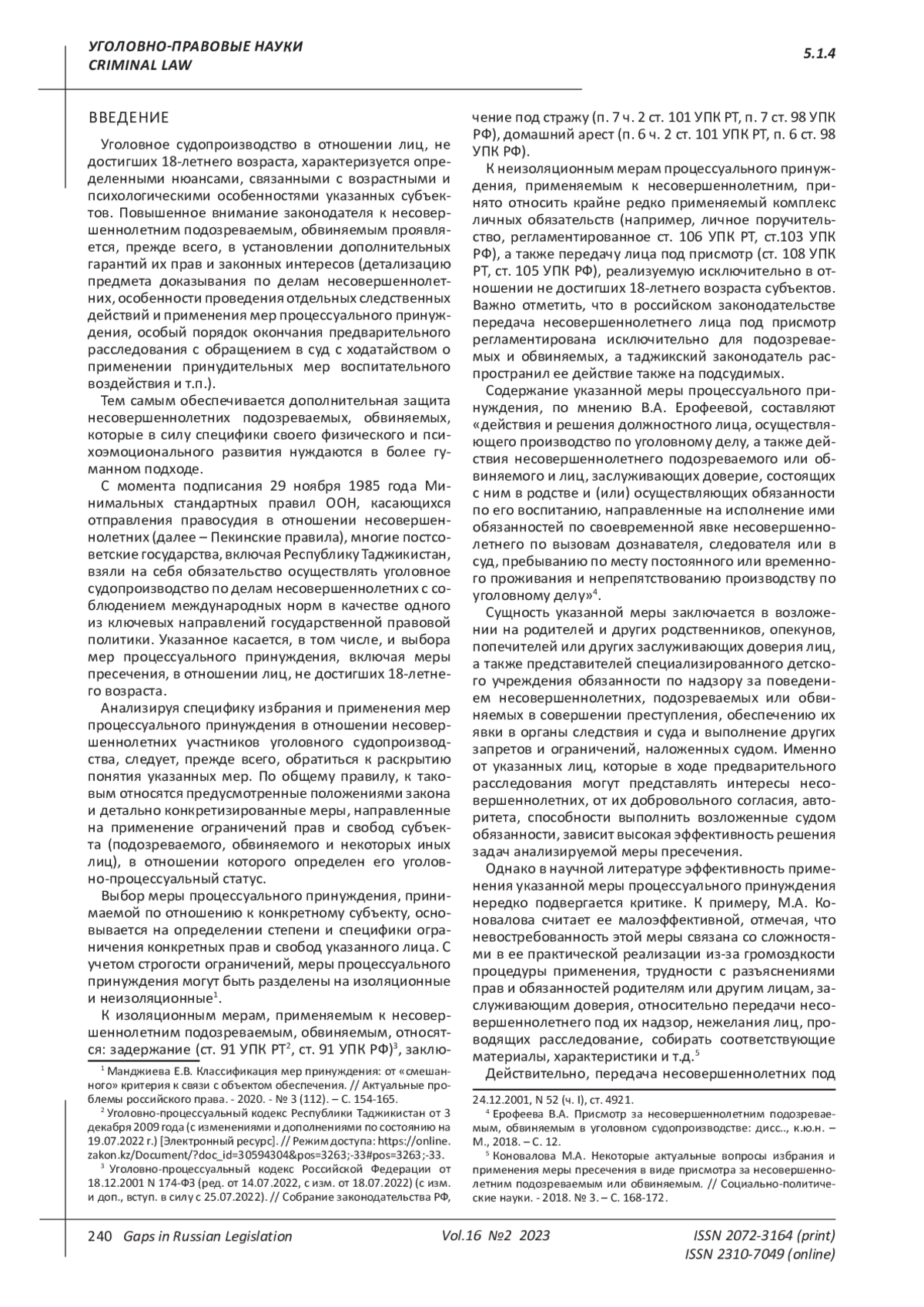 4. Ерофеева В.А. Присмотр за несовершеннолетним подозреваемым, обвиняемым в уголовном судопроизводстве: дисс.., к.ю.н. - М., 2018. - С. 12. EDN: XSNLIT