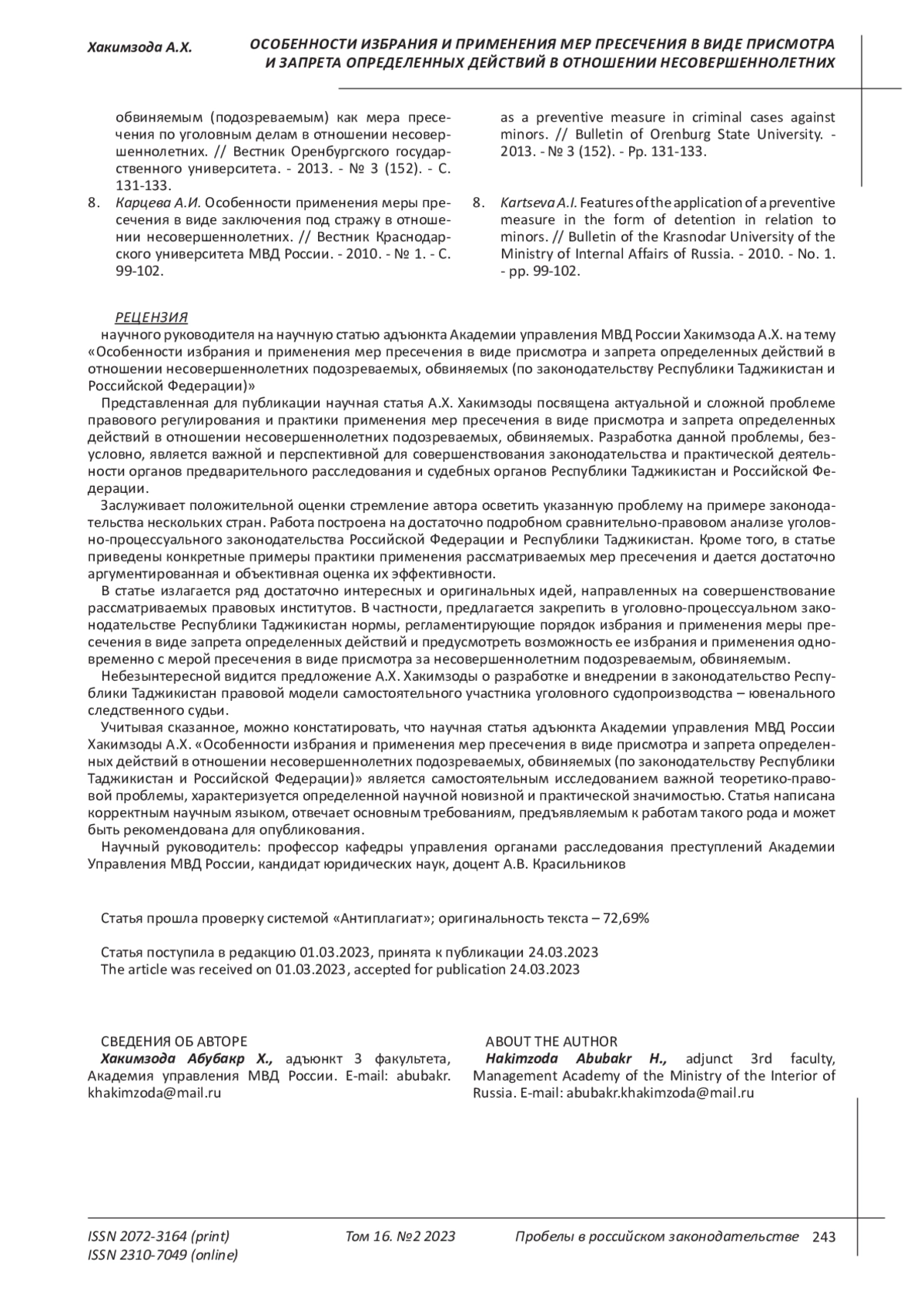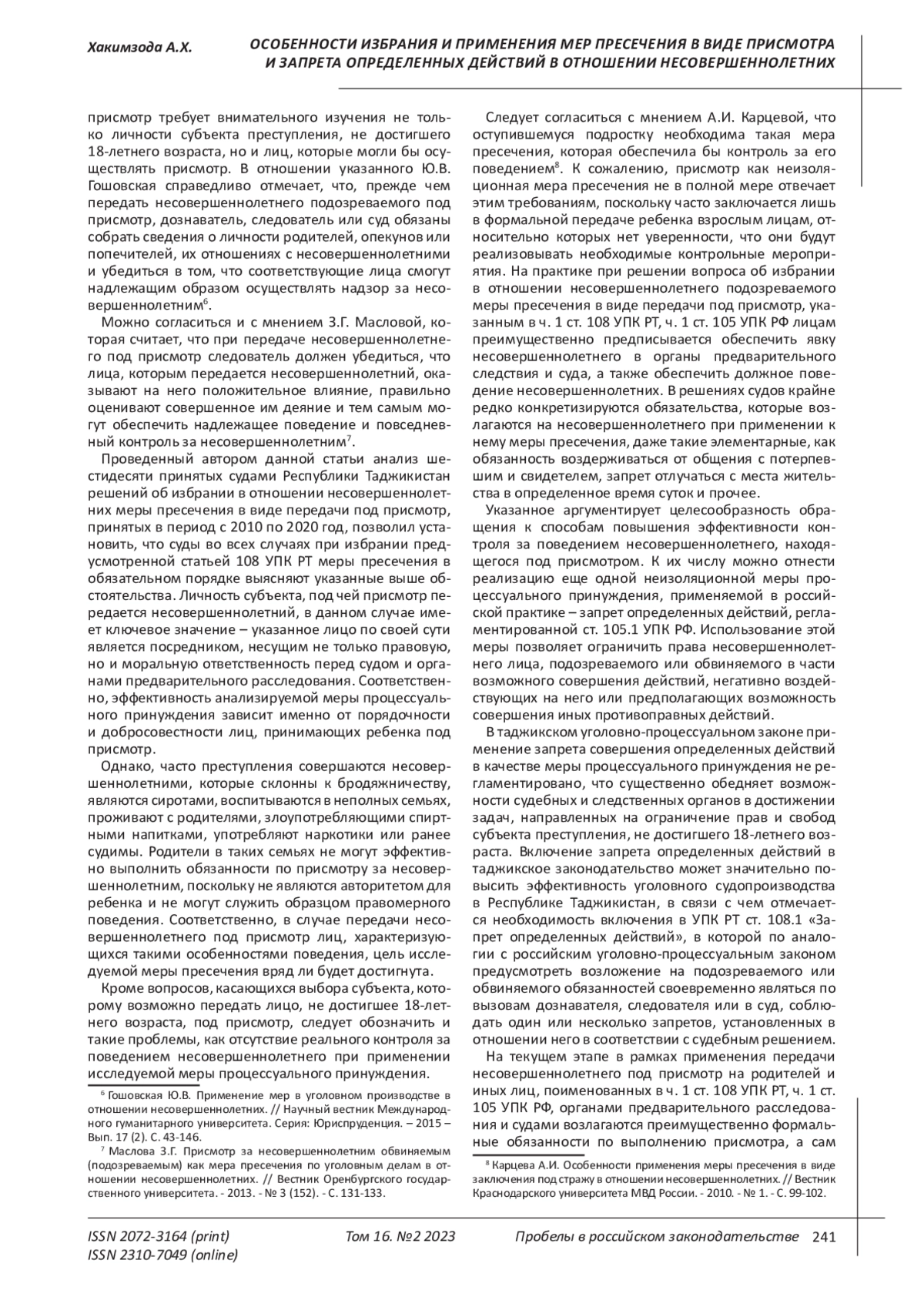 6. Гошовская Ю.В. Применение мер в уголовном производстве в отношении несовершеннолетних. // Научный вестник Международного гуманитарного университета. Серия: Юриспруденция. - 2015 - Вып. 17 (2). С. 43-146.