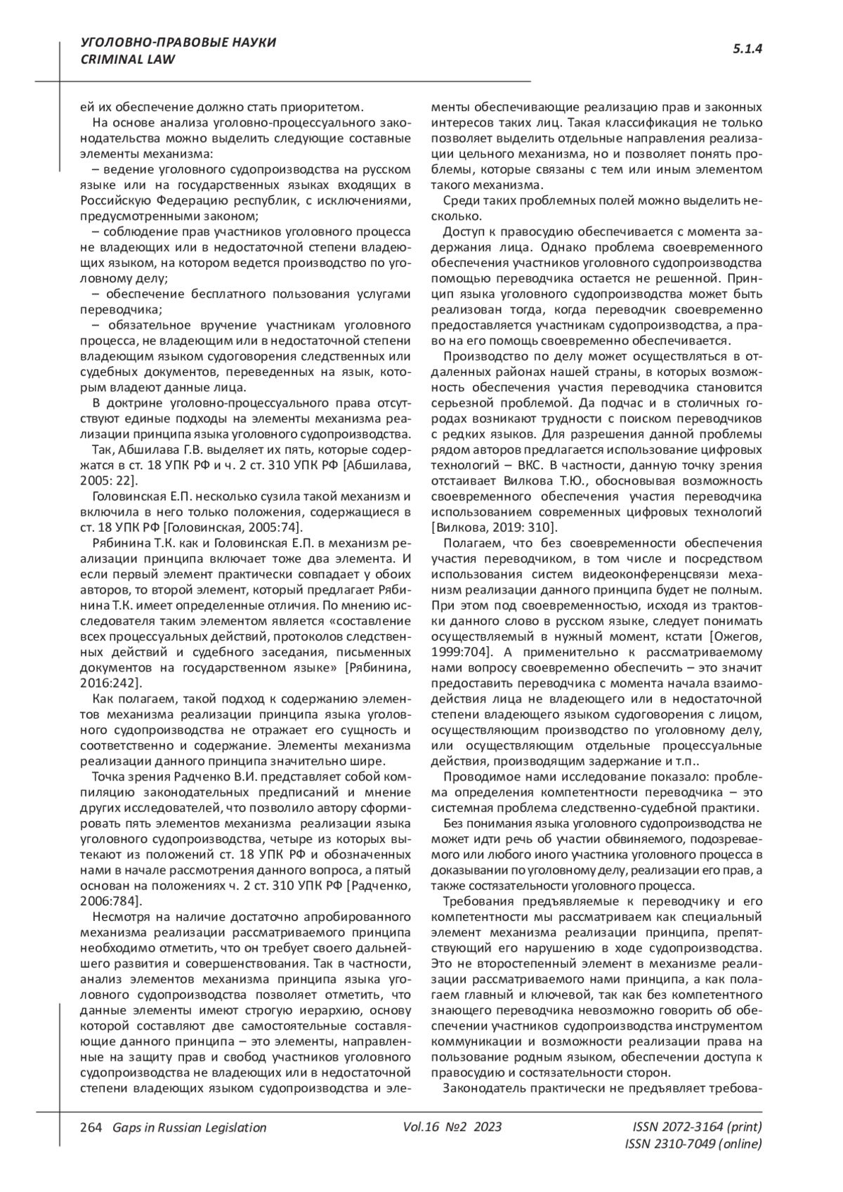 Abshilava, G. V. The principle of the language of criminal proceedings in the system of constitutional principles of the process / G. V. Abshilava // Modern problems of criminal policy: V International Scientific and Practical Conference, Krasnodar, October 03, 2014 / Edited by A.N. Ilyashenko. - Krasnodar: Federal State State Educational Institution of Higher Professional Education “Krasnodar University of the Ministry of Internal Affairs of the Russian Federation”, 2014. - pp. 247-255. EDN: TROZNL