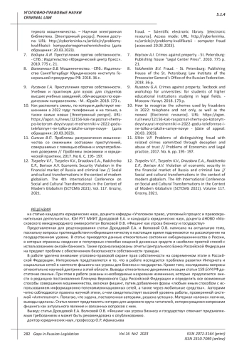 6. Алферова, Ю. О. Проблемы квалификации компьютерного мошенничества. - Научная электронная библиотека. [Электронный ресурс]. Режим доступа: URL: http://cyberleninka.ru/article/n/problemy-kvalifikatsii- kompyuternogomoshennichestva (дата обращения: 20.03.2023).