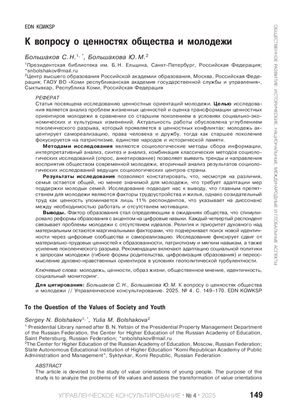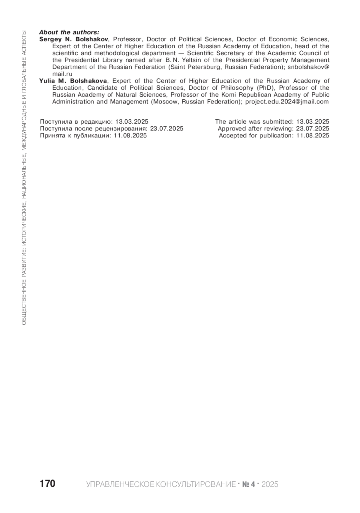 Для цитирования: Хлутков А. Д. Особые условия СВО и реконструкция системы государственного управления. Управленческое консультирование. 2025;(4):8. EDN: KDHYXY