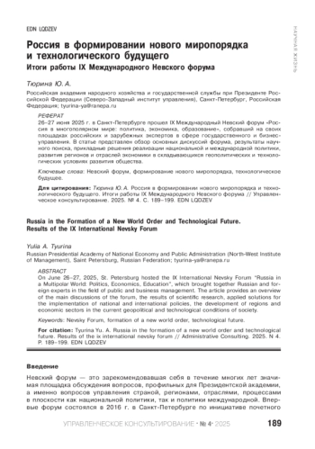 Для цитирования: Хлутков А. Д. Особые условия СВО и реконструкция системы государственного управления. Управленческое консультирование. 2025;(4):8. EDN: KDHYXY