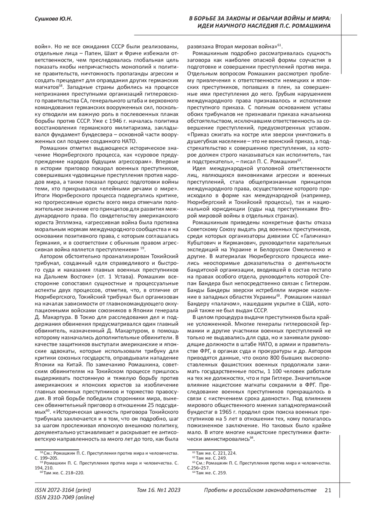 Romashkin P.S. Crimes against the world and humanity. M.: Nauka, 1967. 357 p.