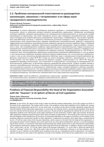 Savin V. T. Formation and development of labor legislation regulating the financial responsibility of the head of the organization // Gaps in Russian legislation. 2022. No. 5. p. 239. EDN: IGIISR