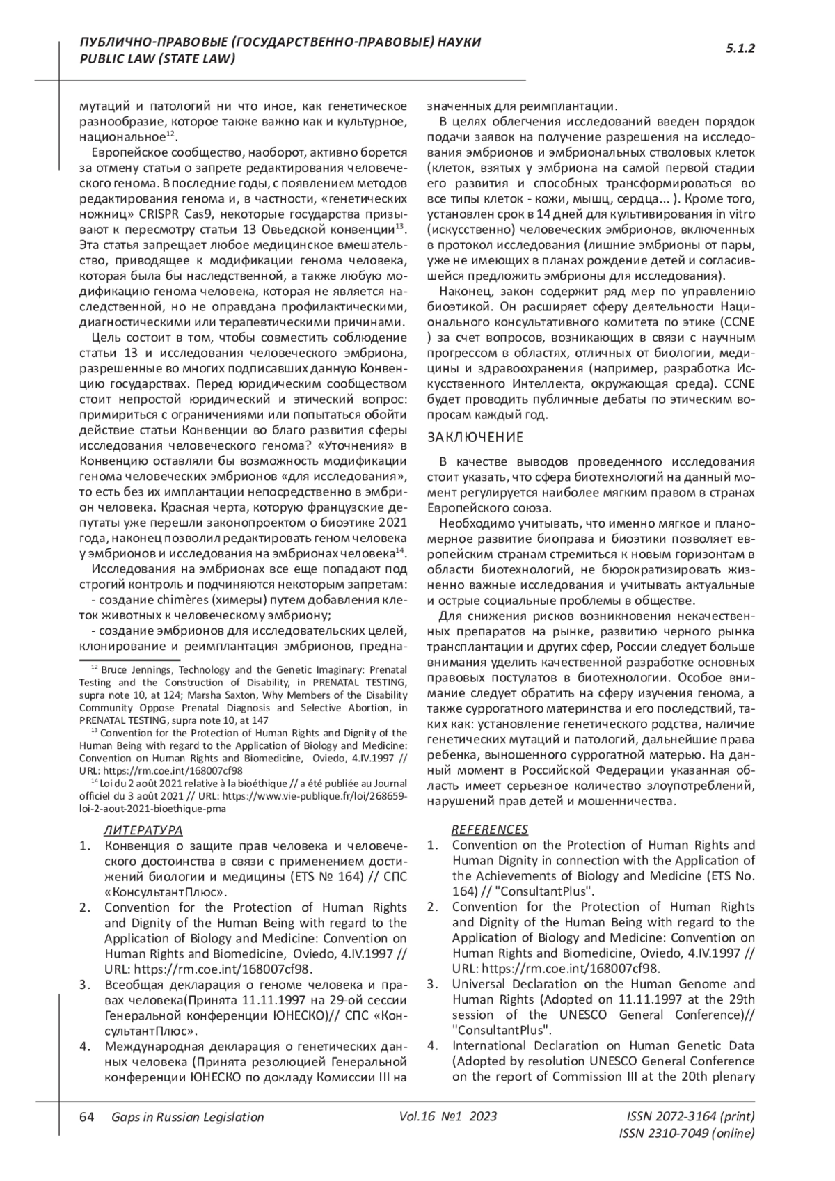 1. Конвенция о защите прав человека и человеческого достоинства в связи с применением достижений биологии и медицины (ETS № 164) // СПС “КонсультантПлюс”.