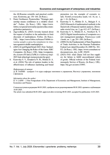 7. ИИ и цифровой ритейл 2025: как технологии меняют правила игры. РБК Компании. 2025. URL: https://companies.rbc.ru/news/SYdnUyTzPK/ii-i-tsifrovoj-ritejl-2025-kaktehnologii-menyayut-pravila-igryi/.
