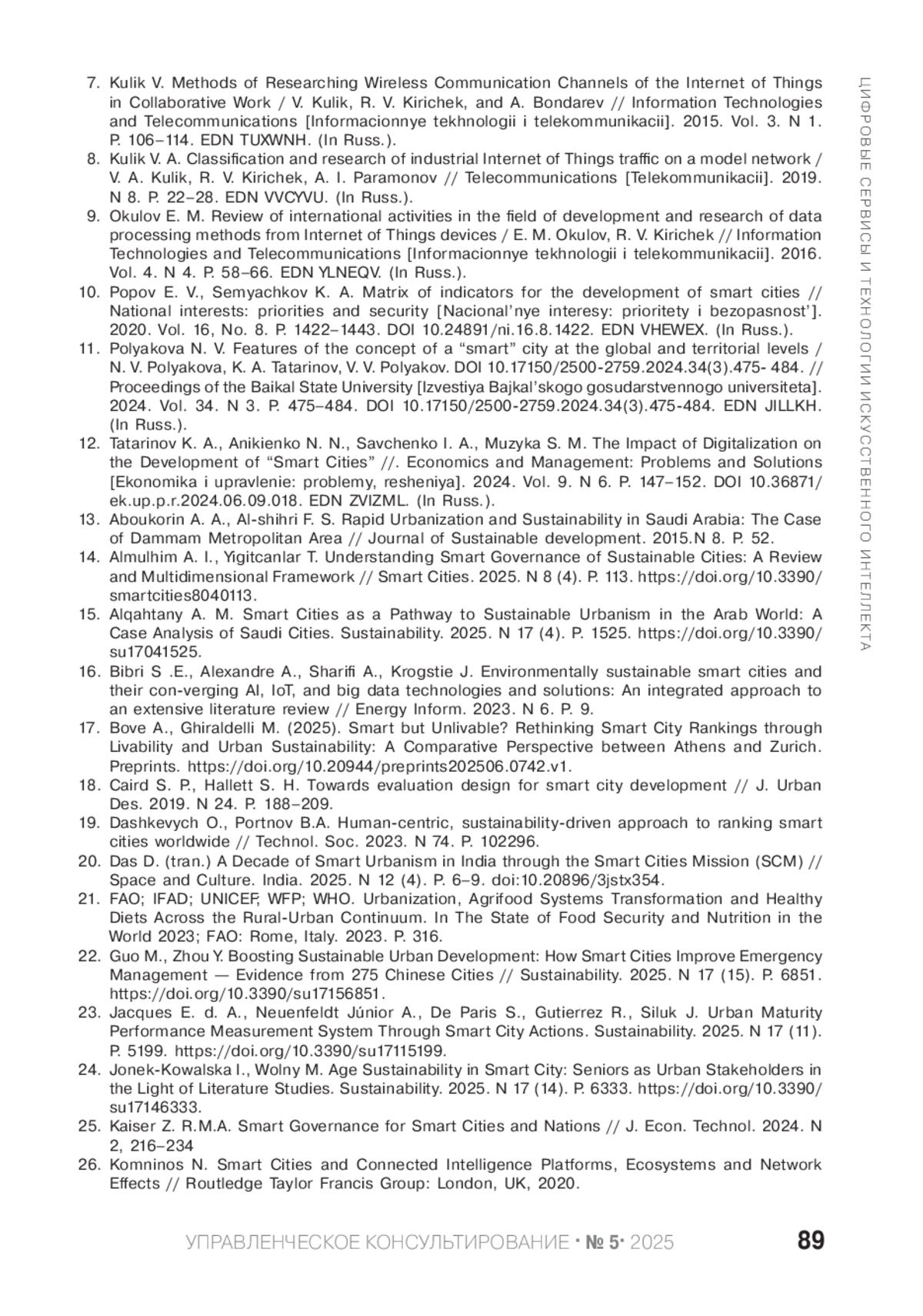 14. Almulhim A. I., Yigitcanlar T. Understanding Smart Governance of Sustainable Cities: A Review and Multidimensional Framework. Smart Cities. 2025. N 8 (4). Р. 113. https://doi.org/10.3390/smartcities8040113