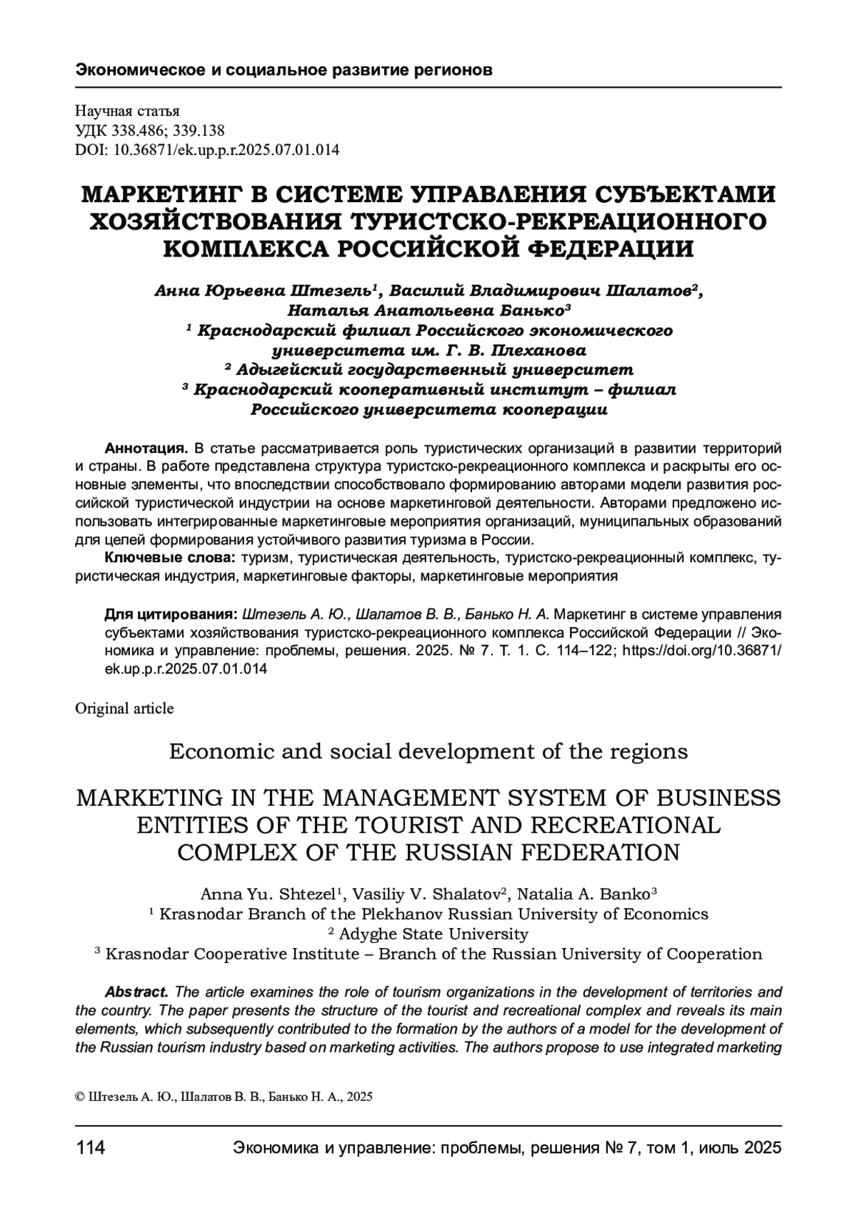 1. Андресян И. Ф. Развитие туризма в России на основе маркетинговой информации хозяйствующих субъектов и субъектов экономики // Экономика устойчивого развития. 2024. № 2(58). С. 21-24. EDN: IUNJQV