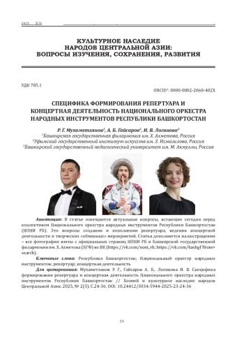 В статье освещаются актуальные вопросы, встающие сегодня передколлективом Национального оркестра народных инструментов Республики Башкортостан(НОНИ РБ). Это вопросы создания и пополнения репертуара, ведения концертнойдеятельности и творческих «обменных» мероприятий. Статья дополняется иллюстрациями– все фотографии взяты с официальных страниц НОНИ РБ и Башкирской государственнойфилармонии им. Х. Ахметова (БГФ) во ВК (https://vk. com/noni_rb; https://vk. com/bashgf? from=search)