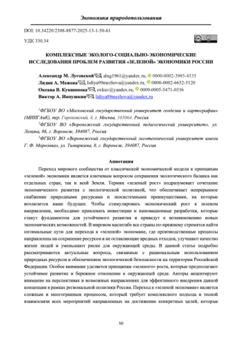20. Zemzyulina V.Yu. On the relevance of the green economy for Russian enterprises / V.Yu. Zemzyulina, N.R. Kelchevskaya // Russian regions in the focus of change: Collection of reports of the XVII International Conference, Yekaterinburg, November 17-19, 2022. - Yekaterinburg: OOO Izdatelskiy Dom Azhur, 2023. - P. 283-286.