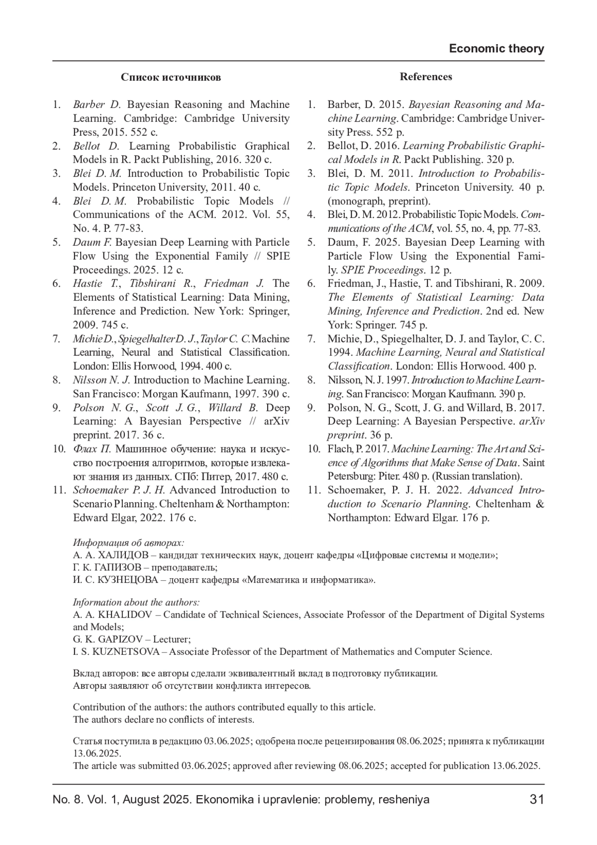 1. Barber D. Bayesian Reasoning and Machine Learning. Cambridge: Cambridge University Press, 2015. 552 с.
