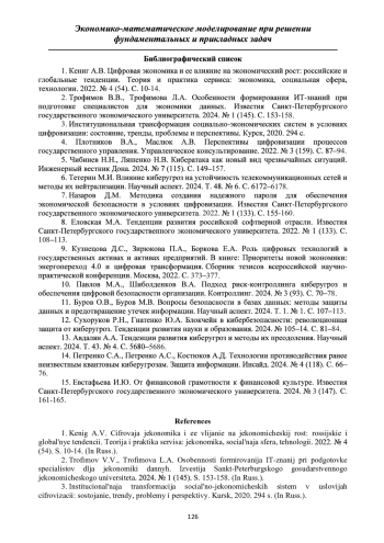 2. Трофимов В.В., Трофимова Л.А. Особенности формирования ИТ-знаний при подготовке специалистов для экономики данных. Известия Санкт-Петербургского государственного экономического университета. 2024. № 1 (145). С. 153-158. EDN: SAFJKA