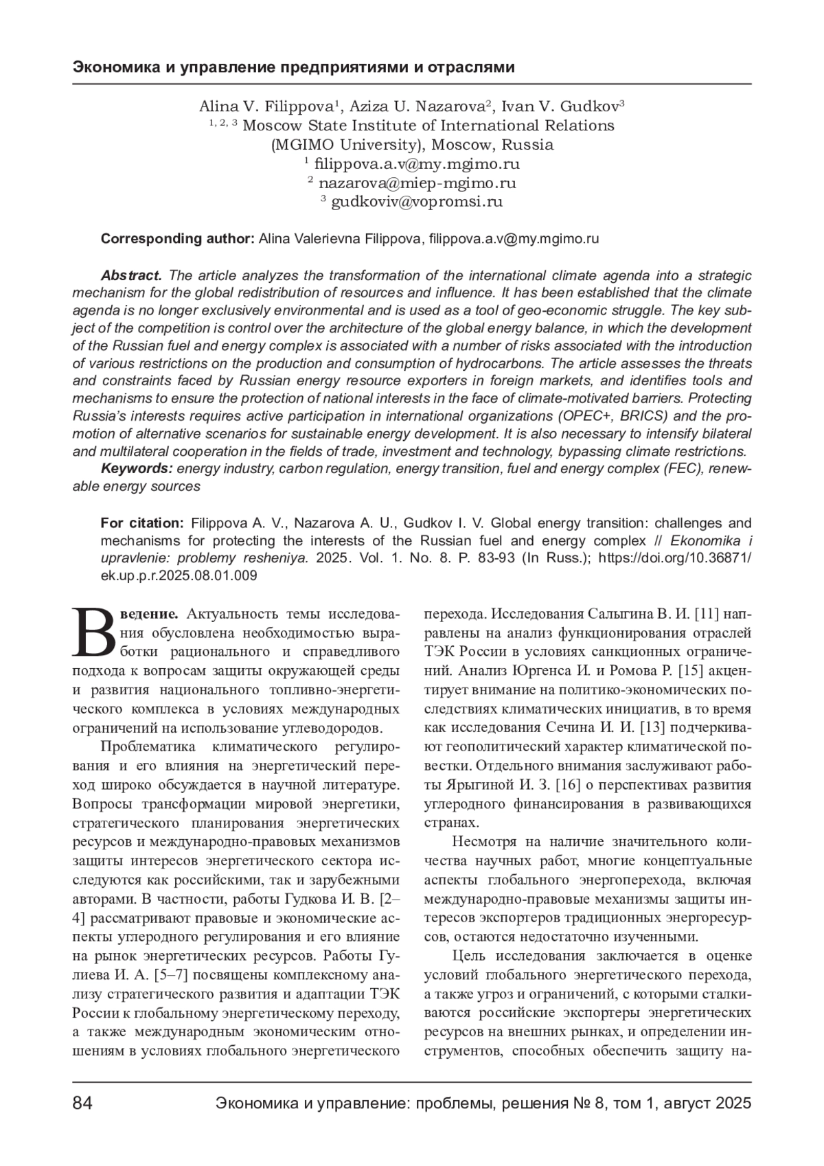 2. Гудков И. “Климатический приговор” ископаемому топливу: окончательный и обжалованию не подлежит? // Энергетическая политика. 2023. № 12 (191). С. 46-59. EDN: PKBAGX
