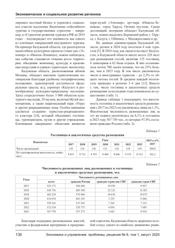 Ключевые фразы: СОБЫТИЙНЫЙ ТУРИЗМ, КАЛУЖСКАЯ ОБЛАСТЬ, туристская инфраструктура, РЕГИОНАЛЬНОЕ РАЗВИТИЕ