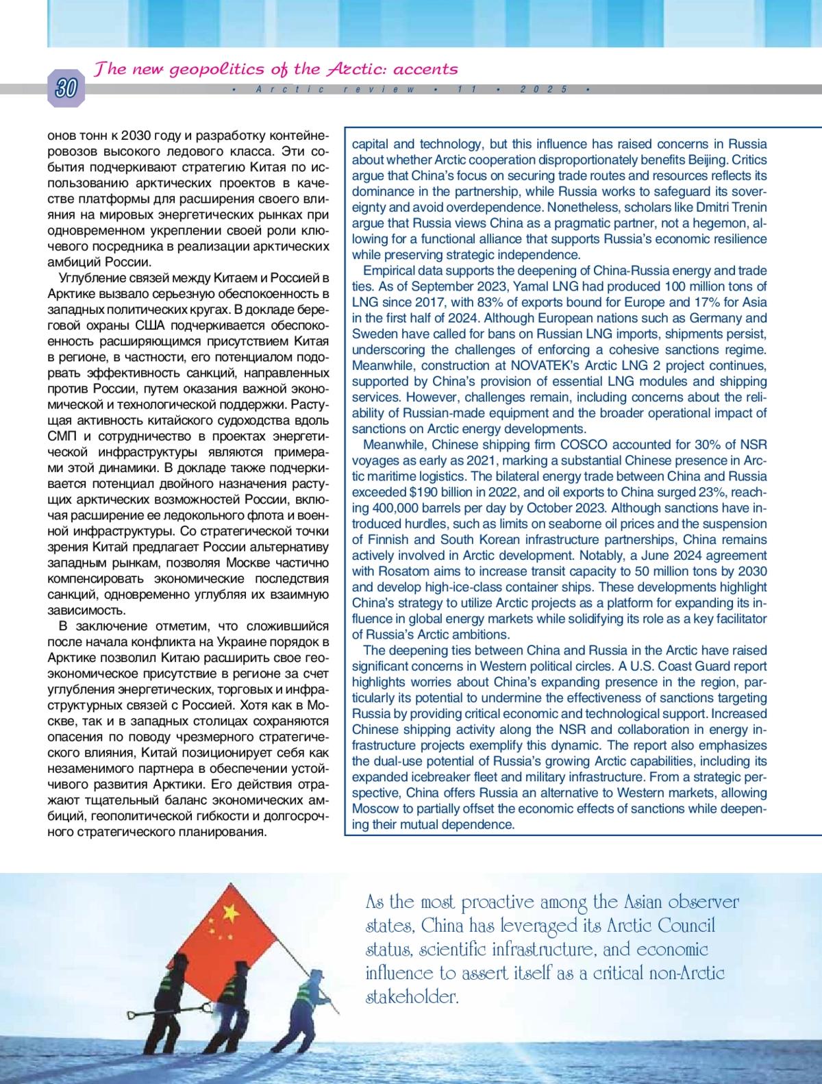 РАБИЯ К. РОЛЬ КИТАЯ В НОВОЙ ГЕОПОЛИТИКЕ АРКТИКИ // АРКТИЧЕСКОЕ ОБОЗРЕНИЕ. 2025. № 11